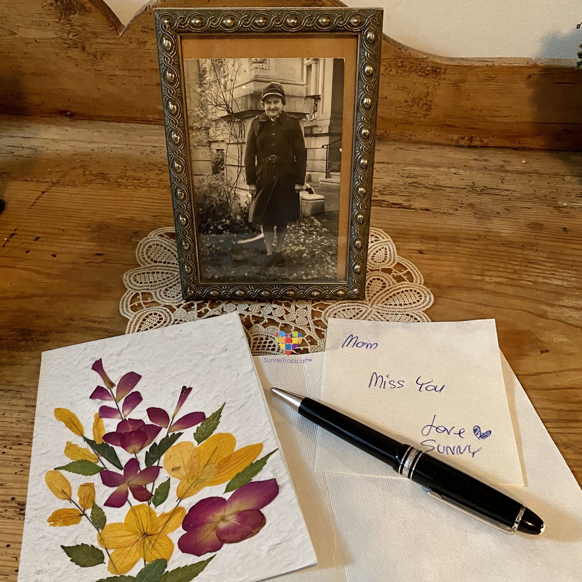 Sunne Tropical 3 Cards Random Pack Handmade Mulberry Paper Greeting Card 5x7 Inch Real Pressed Flowers - Yellow Wild Flower