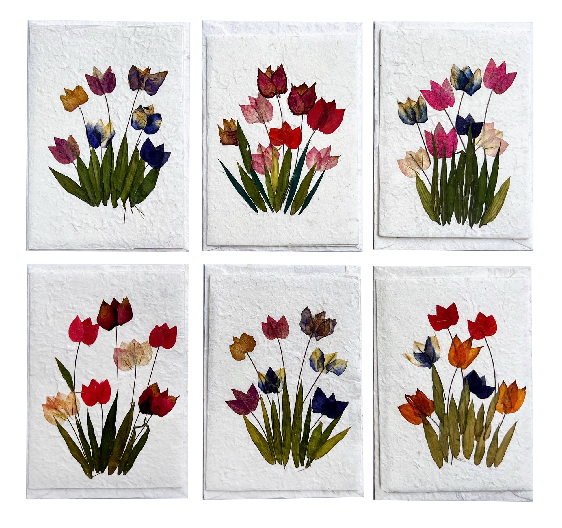Handmade Mulberry Paper Greeting Card 5x7 Inch Random Pack (3 TULIP Garden)